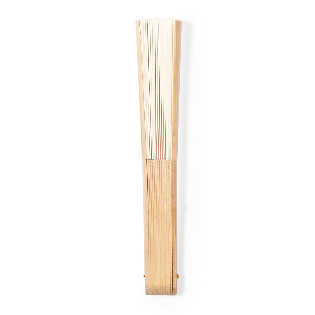 Abanico fabricado con varillas de madera y tela en algodón en combinación con el poliéster. De color natural y presentado en caja individual diseño kraft. Producto de tipo abanico, pensado para acciones promocionales y uso diario. Este artículo está diseñado para campañas de marca, ferias y regalos corporativos. Destaca por su utilidad práctica y por su buena percepción como soporte publicitario. Permite personalización con logotipo o mensaje, reforzando la visibilidad de la marca. Es una solución versátil que se adapta a diferentes públicos y contextos. Relacionado con los términos: Abanico, Verano y Playa, Artículos Sostenibles.