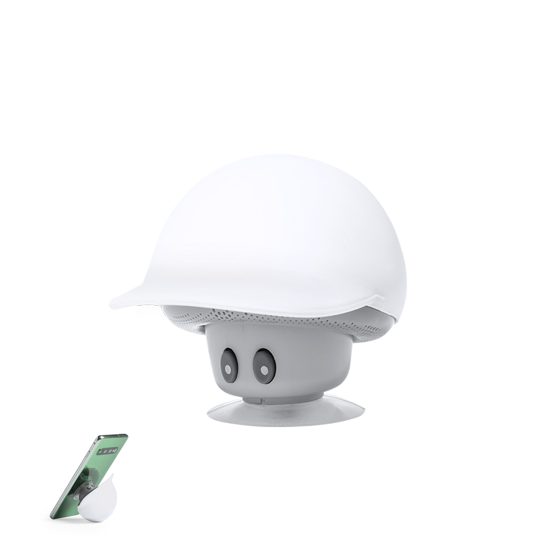 Altavoz de original diseño seta con gorra y función soporte para móvil. Conectividad Bluetooth 5.0, con 3W de potencia y función manos libres. Producto de tipo altavoz, pensado para acciones promocionales y uso diario. Este artículo está diseñado para campañas de marca, ferias y regalos corporativos.