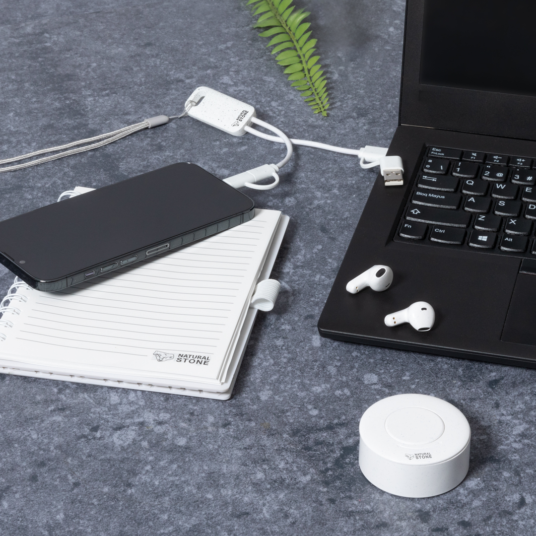 Auriculares intraurales fabricados con extractos de piedra natural en combinación con resistente ABS. Con conexión Bluetooth 5.3 y batería integrada de litio, con 30 mAh en cada auricular. Producto de tipo auriculares, pensado para acciones promocionales y uso diario. Este artículo está diseñado para campañas de marca, ferias y regalos corporativos. Destaca por su utilidad práctica y por su buena percepción como soporte publicitario. Permite personalización con logotipo o mensaje, reforzando la visibilidad de la marca. Es una solución versátil que se adapta a diferentes públicos y contextos. Relacionado con los términos: Auriculares, Tecnología y Accesorios, Artículos Sostenibles.
