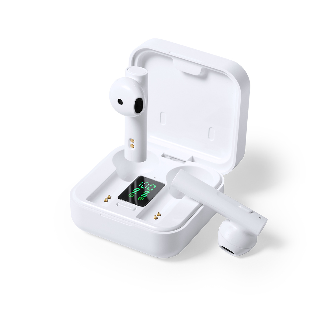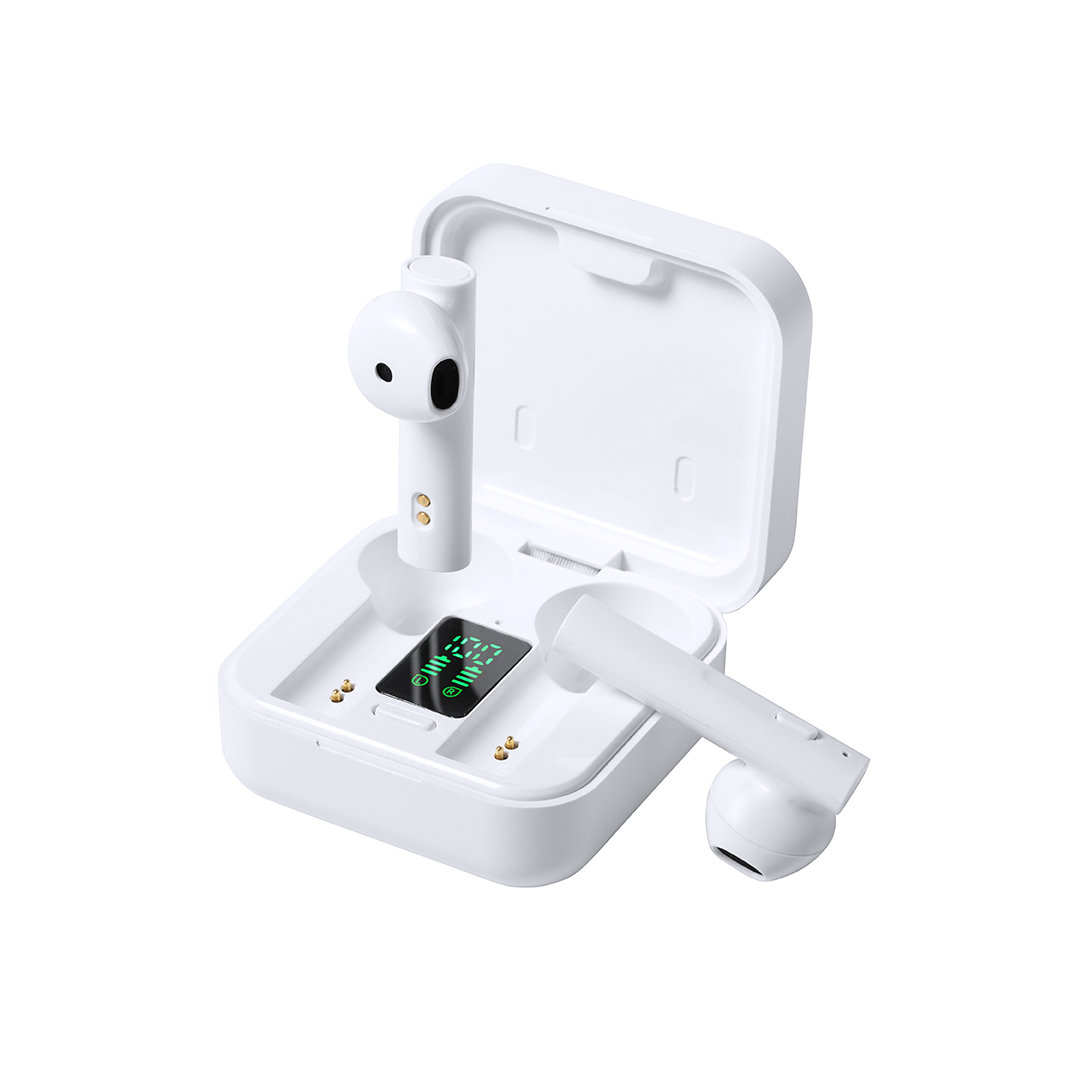 Auriculares intraurales en elegante acabado blanco y conexión Bluetooth 5.0. Con panel de carga solar integrado en la tapa y pantalla LCD interior con indicador de estado de carga. Producto de tipo auriculares, pensado para acciones promocionales y uso diario. Este artículo está diseñado para campañas de marca, ferias y regalos corporativos. Destaca por su utilidad práctica y por su buena percepción como soporte publicitario. Permite personalización con logotipo o mensaje, reforzando la visibilidad de la marca. Es una solución versátil que se adapta a diferentes públicos y contextos. Relacionado con los términos: Auriculares, Tecnología y Accesorios.