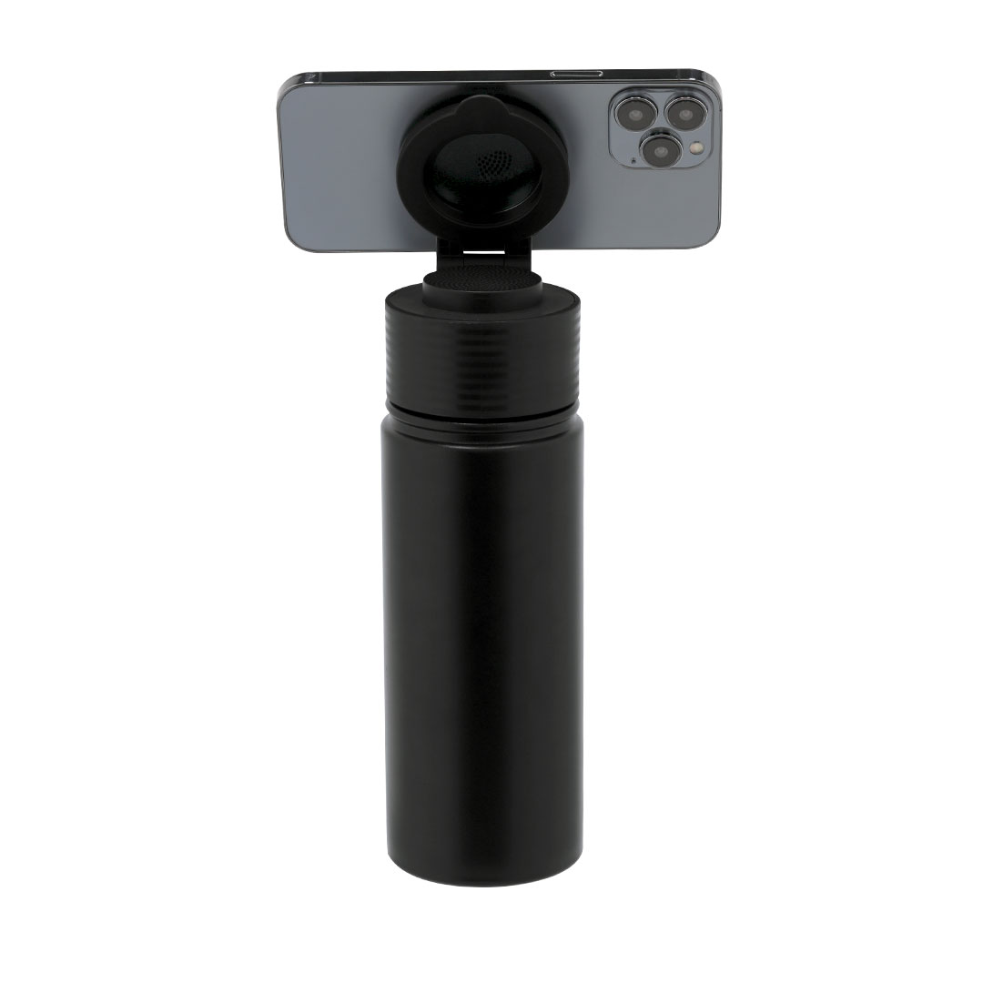 Bidón térmico con Altavoz Bluetooth 5.4 de 3W integrado. Con 500 ml de capacidad y fabricado en acero inox de doble pared, asegurando una durabilidad máxima y un excelente mantenimiento de la temperatura de las bebidas, ya sean frías o calientes. Producto de tipo bidón térmico multifunción, pensado para acciones promocionales y uso diario. Este artículo está diseñado para campañas de marca, ferias y regalos corporativos. Destaca por su utilidad práctica y por su buena percepción como soporte publicitario. Permite personalización con logotipo o mensaje, reforzando la visibilidad de la marca. Es una solución versátil que se adapta a diferentes públicos y contextos. Relacionado con los términos: Bidón Térmico Multifunción,.