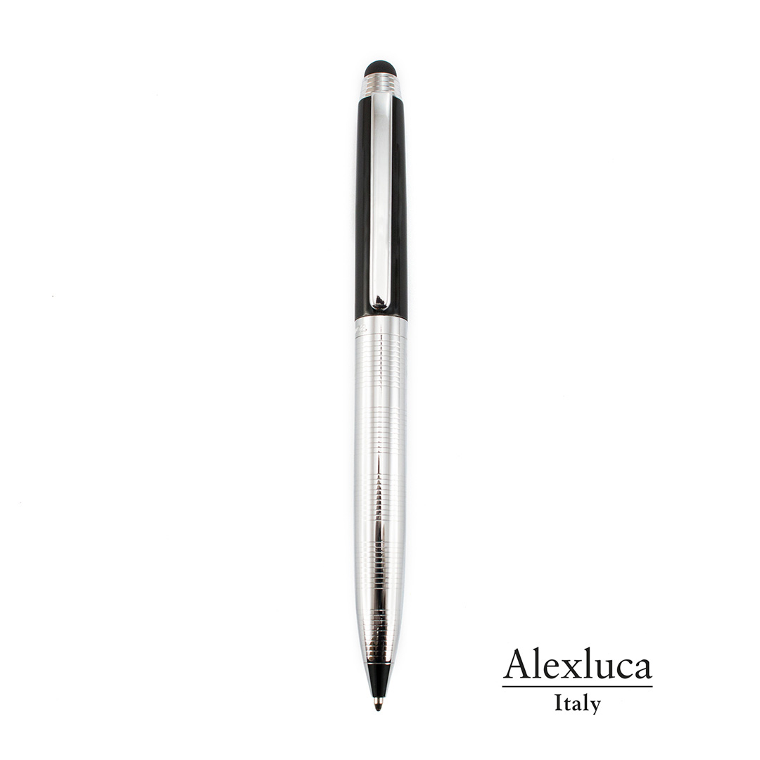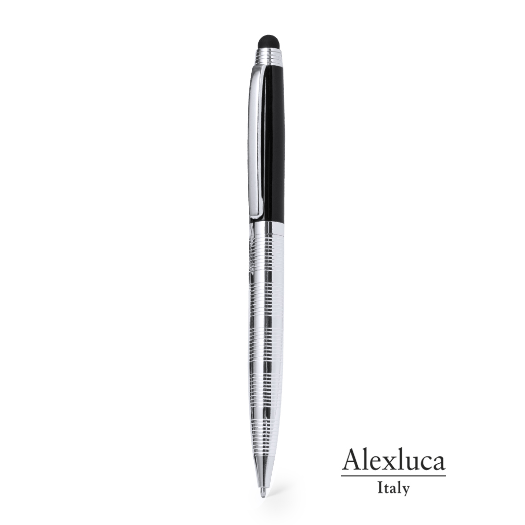 Bolígrafo puntero de Alexluca de mecanismo giratorio con suave cuerpo metálico, de elegante combinación de colores en plateado y negro. Clip y empuñadura de diseño a juego. Producto de tipo bolígrafo puntero, pensado para acciones promocionales y uso diario. Este artículo está diseñado para campañas de marca, ferias y regalos corporativos. Destaca por su utilidad práctica y por su buena percepción como soporte publicitario. Permite personalización con logotipo o mensaje, reforzando la visibilidad de la marca. Es una solución versátil que se adapta a diferentes públicos y contextos. Relacionado con los términos: Bolígrafo Puntero, Alexluca, Escritura, Marcas.