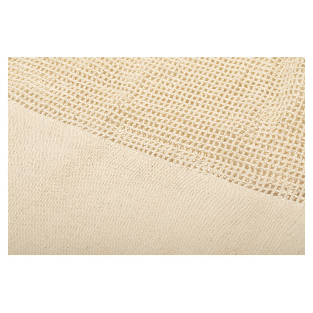 Bolsa de redecilla de línea nature en algodón crudo de 220g/m2, con superficie lisa para impresión. Asas largas de 60 cm reforzadas. Producto de tipo bolsa, pensado para acciones promocionales y uso diario. Este artículo está diseñado para campañas de marca, ferias y regalos corporativos.