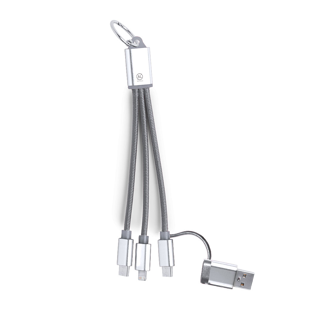 Cable cargador en Aluminio Reciclado. Con conexión de entrada dual Tipo C/USB y salidas Tipo C, Lightning y Micro USB. Producto de tipo cable cargador, pensado para acciones promocionales y uso diario. Este artículo está diseñado para campañas de marca, ferias y regalos corporativos. Destaca por su utilidad práctica y por su buena percepción como soporte publicitario. Permite personalización con logotipo o mensaje, reforzando la visibilidad de la marca. Es una solución versátil que se adapta a diferentes públicos y contextos. Relacionado con los términos: Cable Cargador, Tecnología y Accesorios.