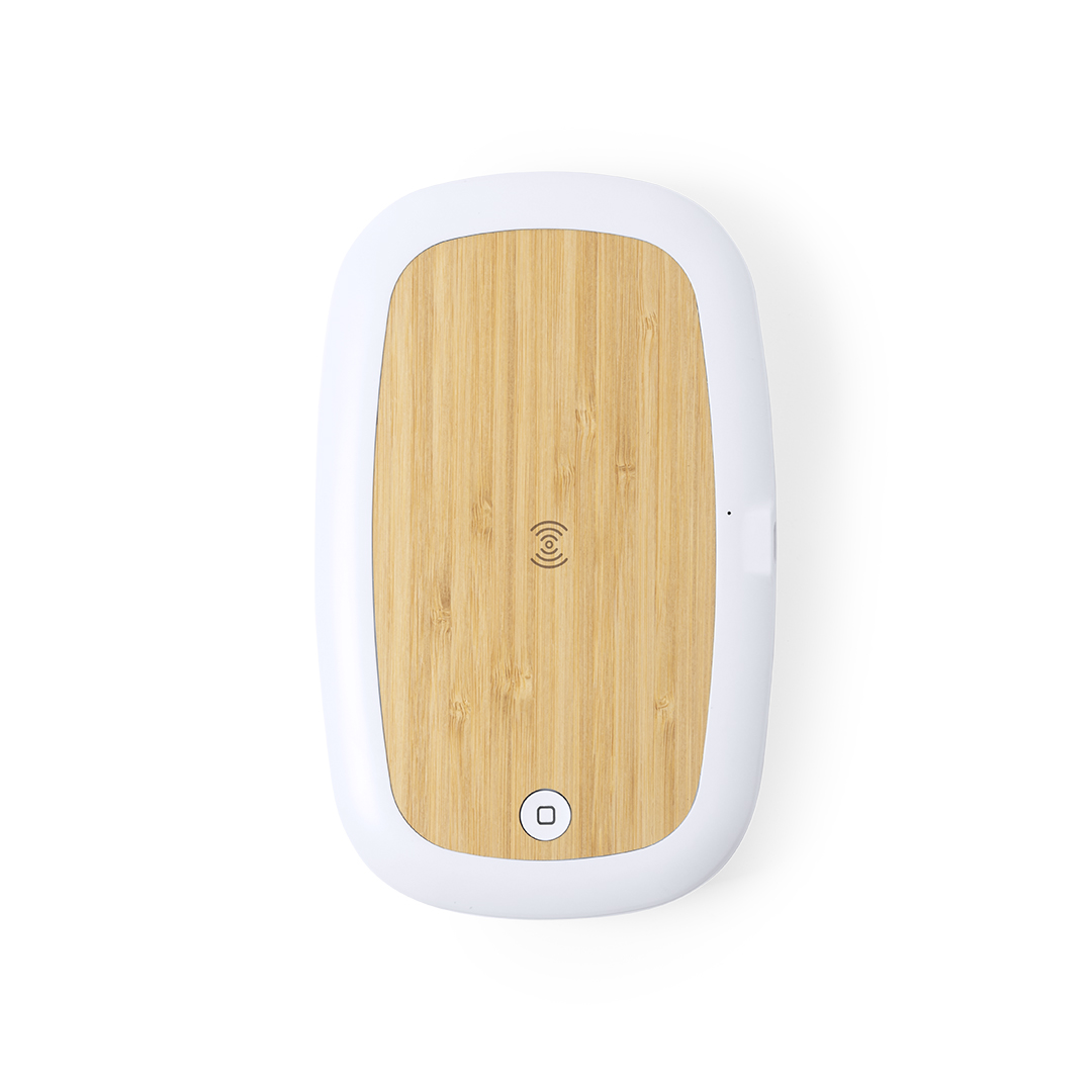 Caja esterilizadora de línea nature, con base de carga en bambú. Luz ultravioleta tipo C, con cargador inalámbrico 5W para smartphone integrado en tapa. Producto de tipo caja esterilizadora uv cargador, pensado para acciones promocionales y uso diario. Este artículo está diseñado para campañas de marca, ferias y regalos corporativos. Destaca por su utilidad práctica y por su buena percepción como soporte publicitario. Permite personalización con logotipo o mensaje, reforzando la visibilidad de la marca. Es una solución versátil que se adapta a diferentes públicos y contextos. Relacionado con los términos: Caja Esterilizadora UV Cargador, Tecnología y Accesorios, Artículos Sostenibles, Antibacterial, Colección protección higiénica, Outlet.