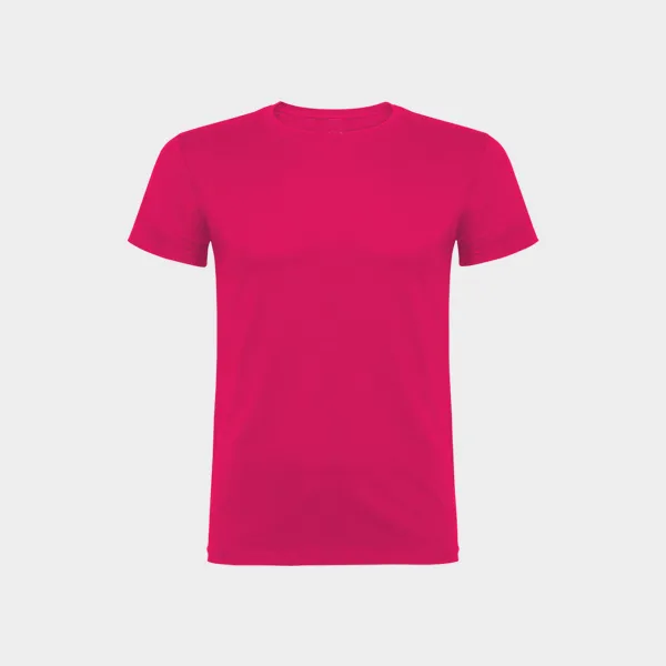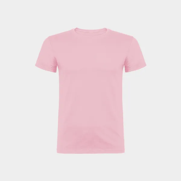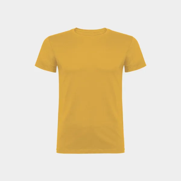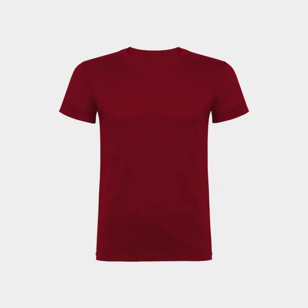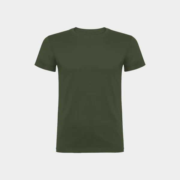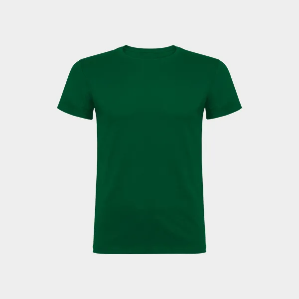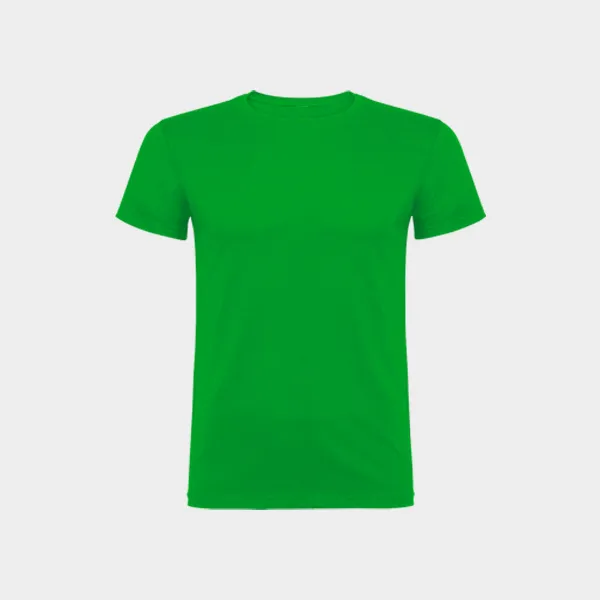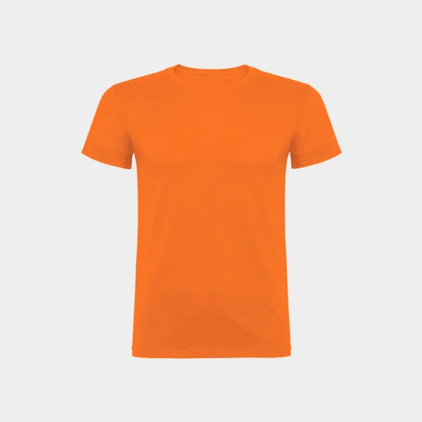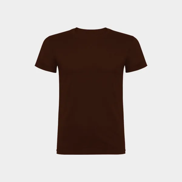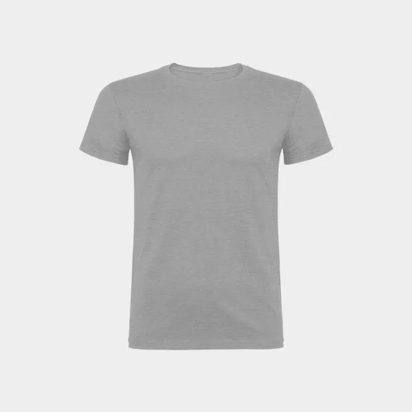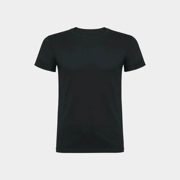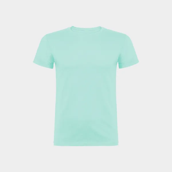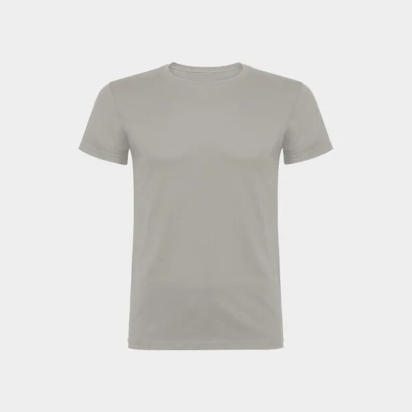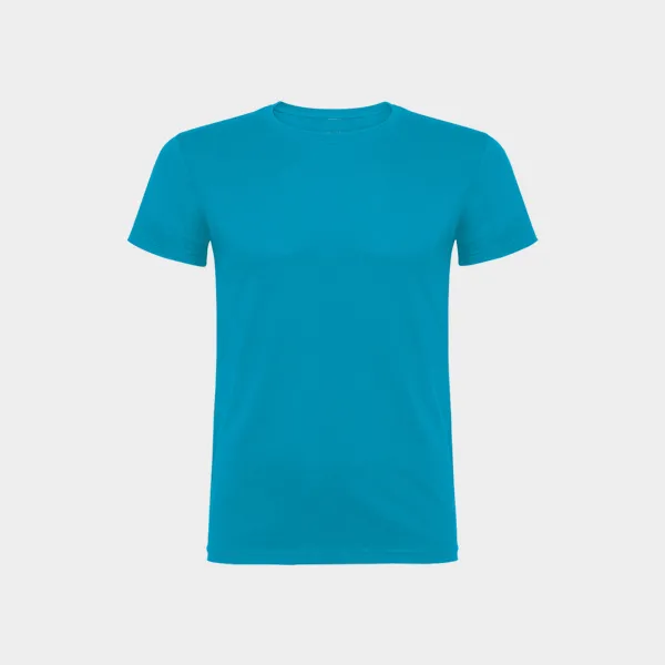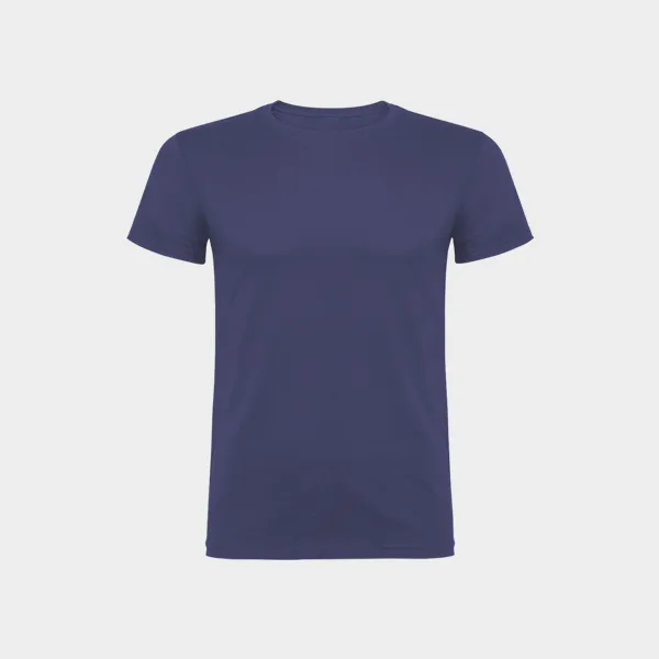 Camiseta de manga corta tubular para hombres. Cuello redondo en canalé 1×1. Cubrecosturas en cuello del mismo tejido.