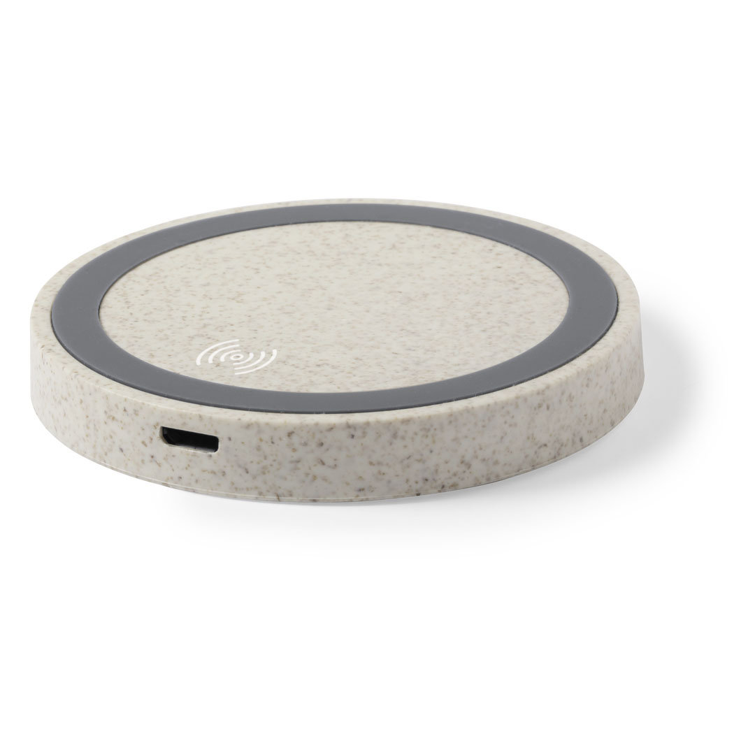 Cargador inalámbrico circular de línea nature. Carcasa en caña de trigo, para así fomentar la utilización de materias primas naturales y reducir las emisiones contaminantes. Producto de tipo cargador, pensado para acciones promocionales y uso diario. Este artículo está diseñado para campañas de marca, ferias y regalos corporativos. Destaca por su utilidad práctica y por su buena percepción como soporte publicitario. Permite personalización con logotipo o mensaje, reforzando la visibilidad de la marca. Es una solución versátil que se adapta a diferentes públicos y contextos. Relacionado con los términos: Cargador, Tecnología y Accesorios, Artículos Sostenibles.