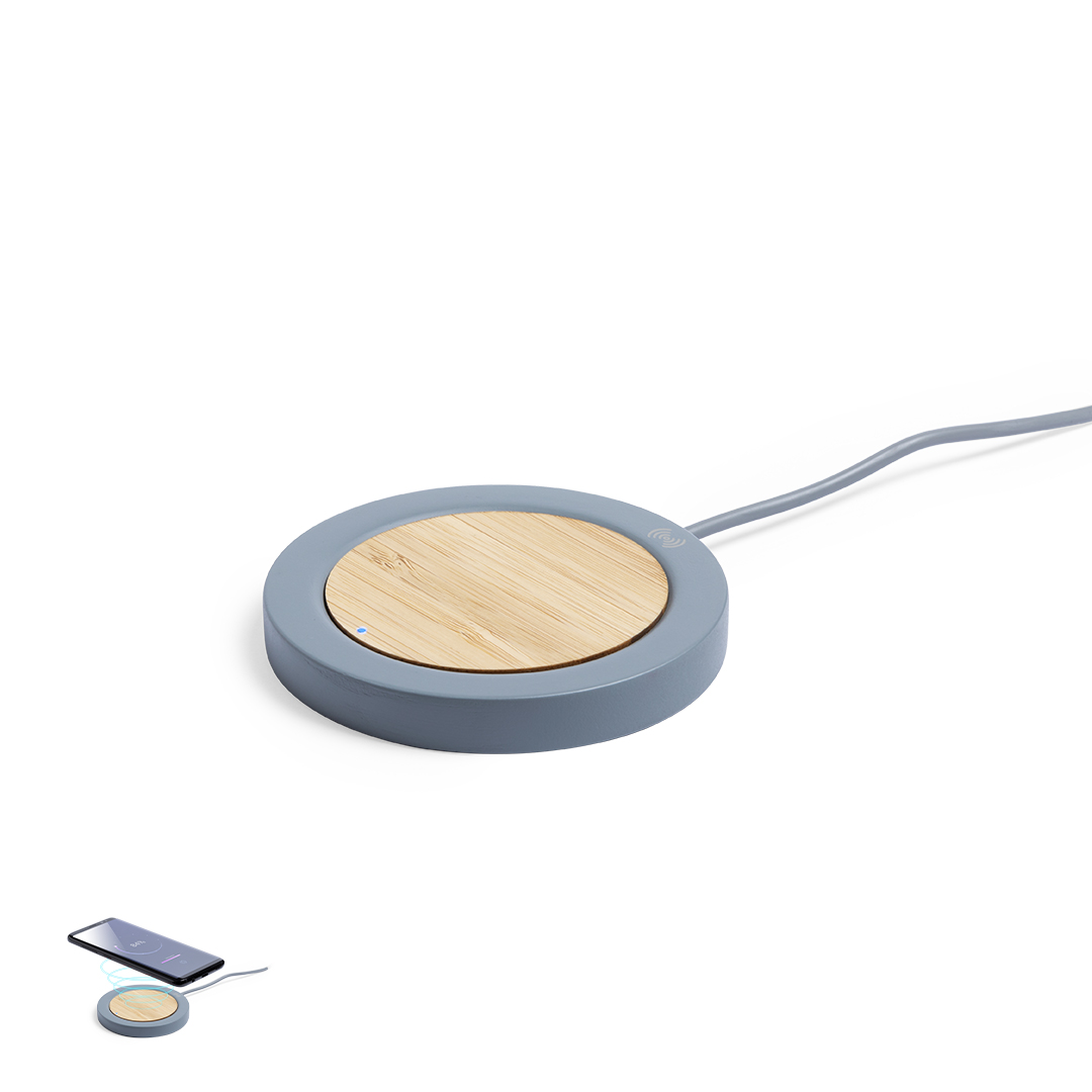 Cargador inalámbrico de diseño circular en combinación de piezas de bambú de corte nature y cemento de piedra caliza, un conglomerante formado por la mezcla de materiales naturales, principalmente piedra caliza molida y agua, obteniendo un material de gran consistencia y durabilidad. Indicador led, cable de carga USB a juego y compatible con dispositivos equipados con tecnología de carga inalámbrica. Producto de tipo cargador, pensado para acciones promocionales y uso diario. Este artículo está diseñado para campañas de marca, ferias y regalos corporativos. Destaca por su utilidad práctica y por su buena percepción como soporte publicitario. Permite personalización con logotipo o mensaje, reforzando la visibilidad de la marca. Es una.