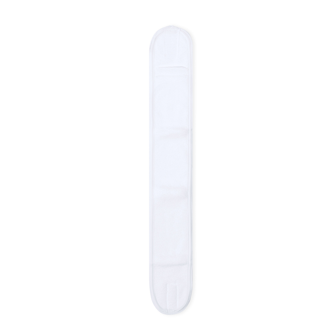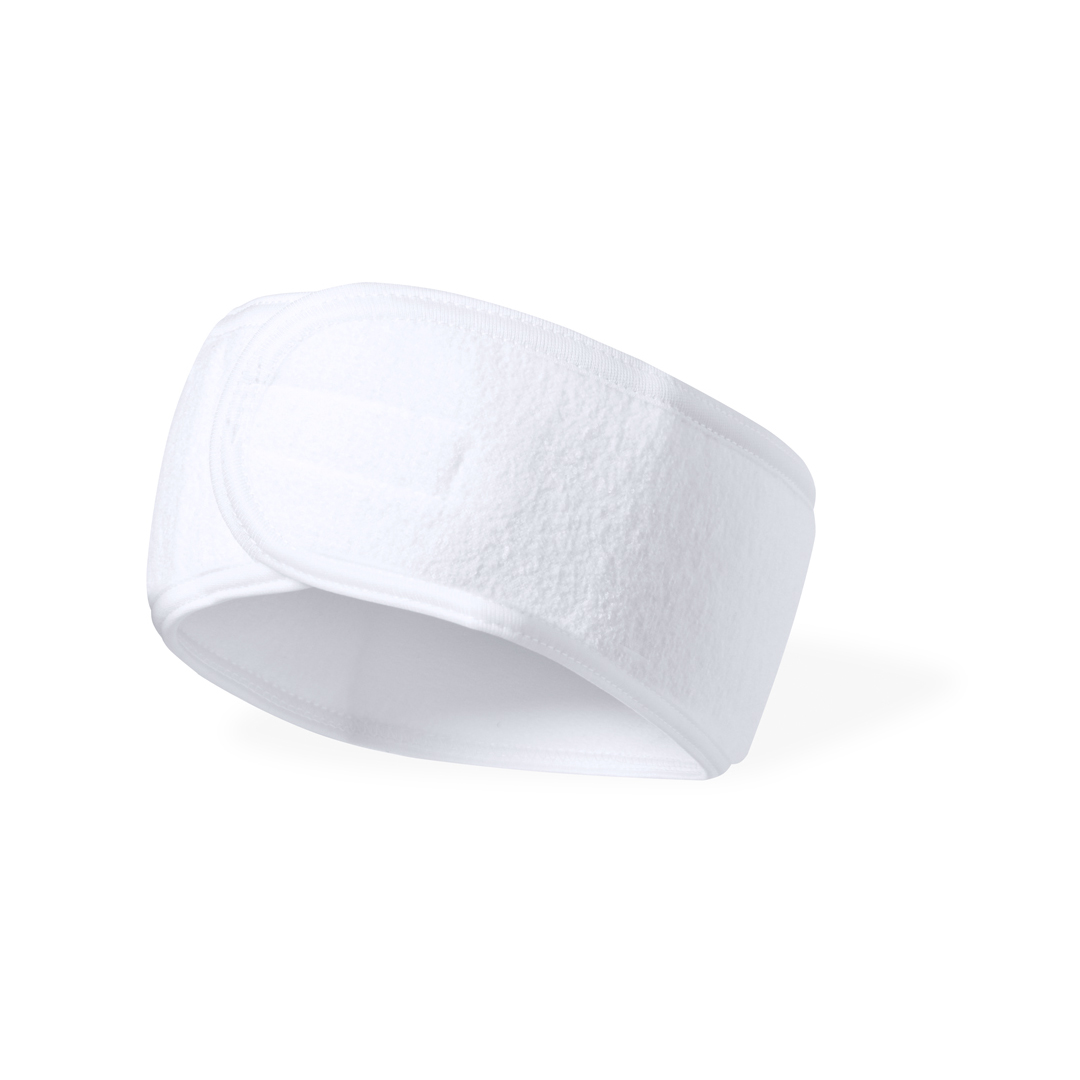 Cinta para pelo fabricada en suave poliéster. Banda ajustable a la cabeza con velcro para despejar el pelo de la cara mientras se aplican los tratamientos beauty. Producto de tipo cinta pelo, pensado para acciones promocionales y uso diario. Este artículo está diseñado para campañas de marca, ferias y regalos corporativos.