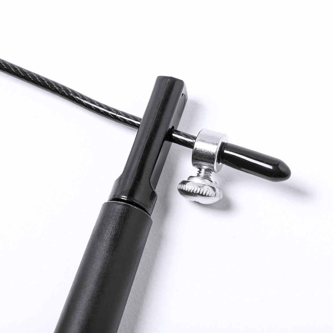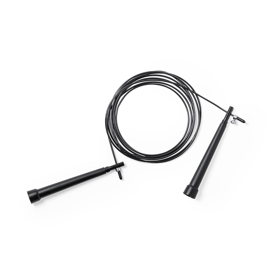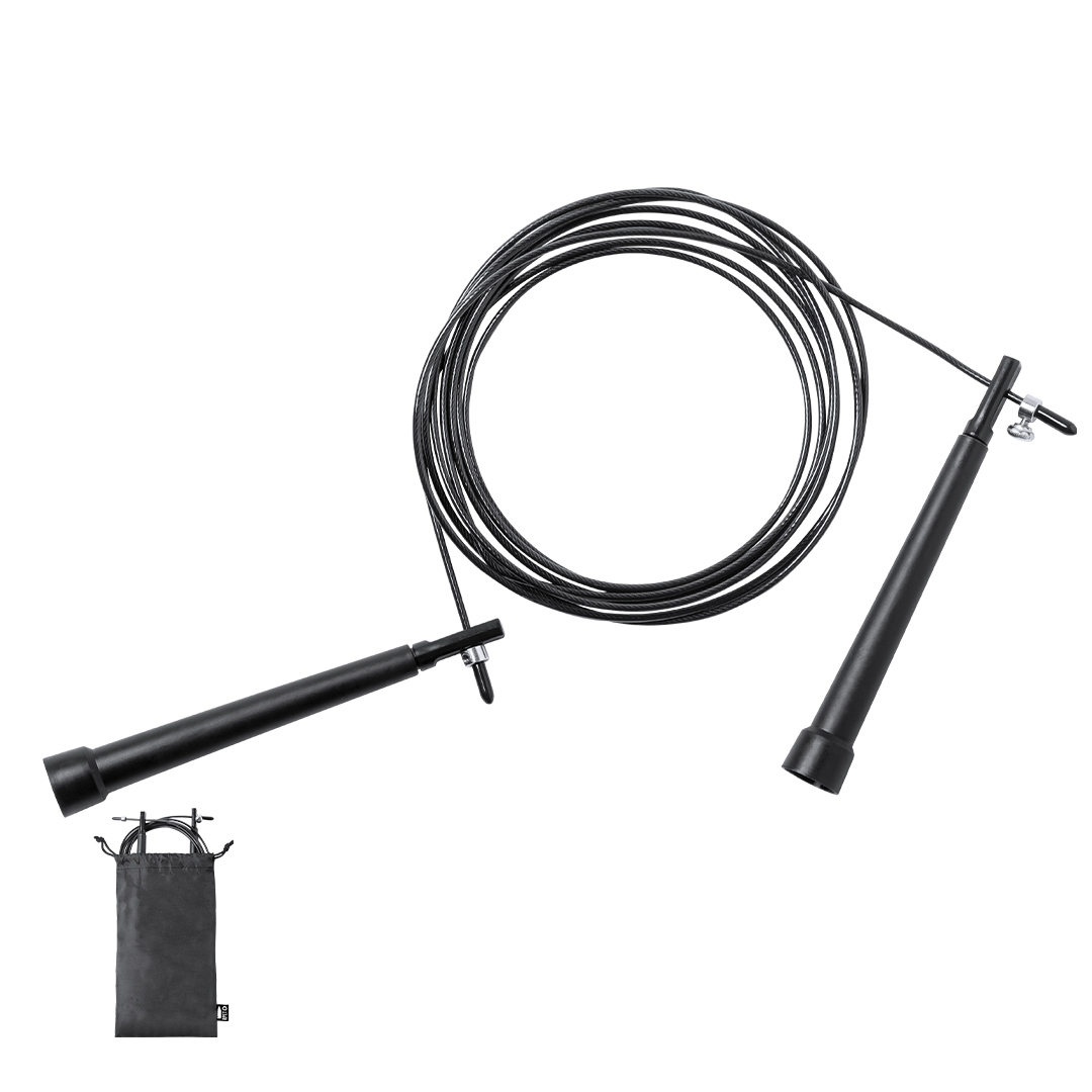 Comba de calidad premium, con cuerda extra larga ajustable de 3m de largo y fabricada en acero con cobertura de resistente PVC. Con mangos de sujeción ergonómicos y presentada en funda de poliéster RPET con cierre de cordón, elaborada a partir de plástico reciclado para así fomentar la reutilización de residuos plásticos y contribuir a la sostenibilidad del planeta. Producto de tipo comba, pensado para acciones promocionales y uso diario. Este artículo está diseñado para campañas de marca, ferias y regalos corporativos. Destaca por su utilidad práctica y por su buena percepción como soporte publicitario. Permite personalización con logotipo o mensaje, reforzando la visibilidad de la marca. Es una solución.