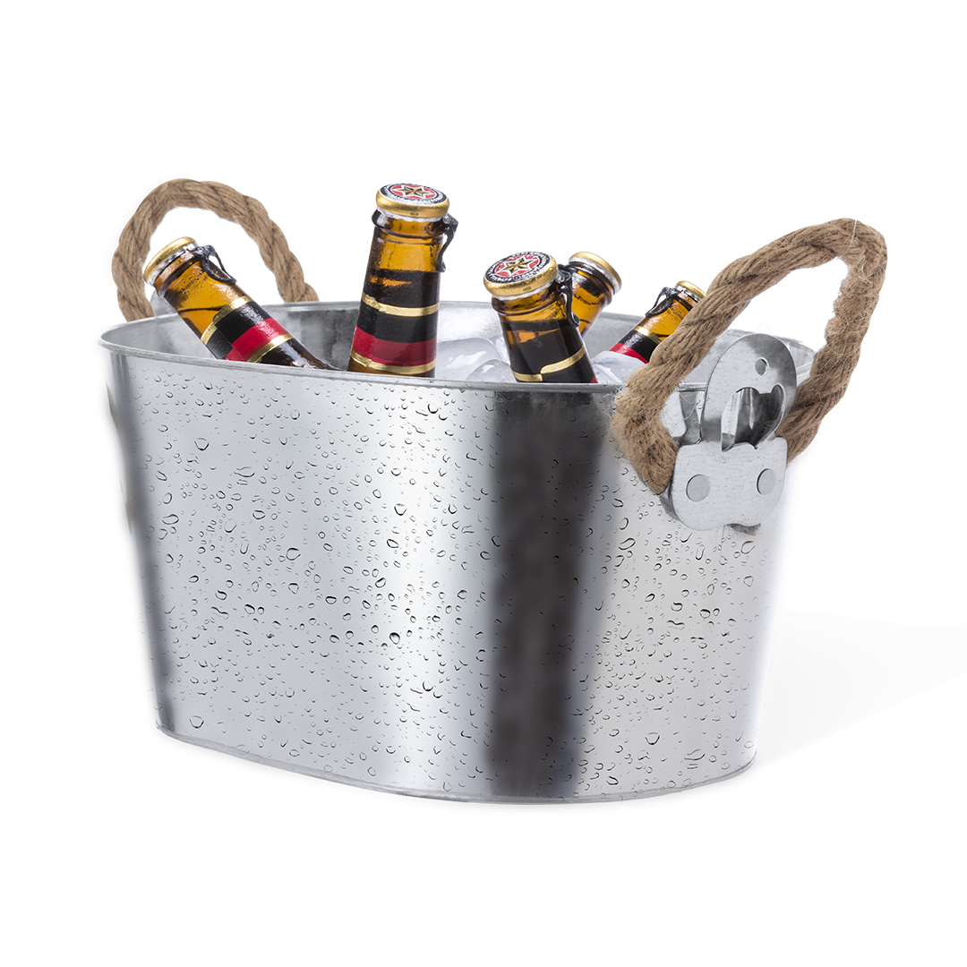 Fantástico cubo metálico de 6l de capacidad para conservar bebidas frías. Fusión perfecta entre estilo y utilidad por sus abridores fijos en los extremos y una gran capacidad. Producto de tipo cubo, pensado para acciones promocionales y uso diario. Este artículo está diseñado para campañas de marca, ferias y regalos corporativos.