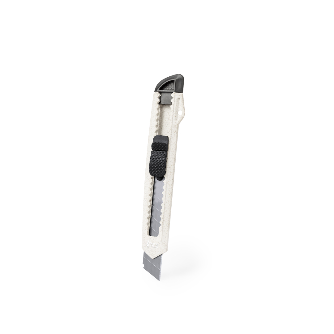 Cutter con cuchilla ancha fabricado en caña de trigo. Mango ergonómico troquelado con capucha extraíble para ajuste de corte de cuchilla, con mecanismo de bloqueo para mayor seguridad. Producto de tipo cutter, pensado para acciones promocionales y uso diario. Este artículo está diseñado para campañas de marca, ferias y regalos corporativos. Destaca por su utilidad práctica y por su buena percepción como soporte publicitario. Permite personalización con logotipo o mensaje, reforzando la visibilidad de la marca. Es una solución versátil que se adapta a diferentes públicos y contextos. Relacionado con los términos: Cutter, Herramientas, Brico y Automóvil, Artículos Sostenibles.