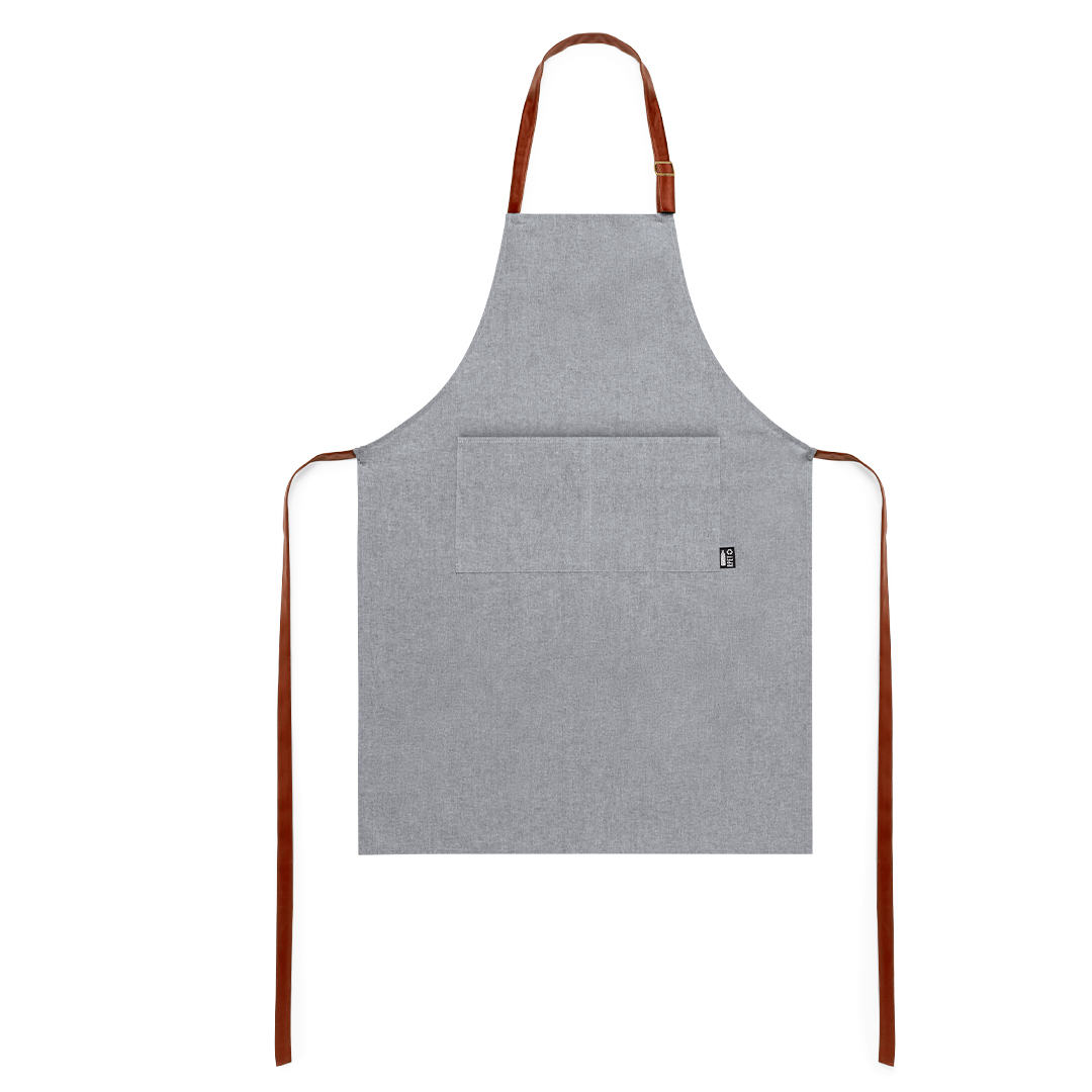 Delantal de línea nature en material RPET, elaborado a partir de plástico reciclado, para así fomentar la reutilización de residuos plásticos y ayudar a la sostenibilidad del planeta. De corte por debajo de la rodilla, con cintas de ajuste en resistente polipiel y amplio bolsillo frontal. Producto de tipo delantal, pensado para acciones promocionales y uso diario. Este artículo está diseñado para campañas de marca, ferias y regalos corporativos. Destaca por su utilidad práctica y por su buena percepción como soporte publicitario. Permite personalización con logotipo o mensaje, reforzando la visibilidad de la marca. Es una solución versátil que se adapta a diferentes públicos y contextos. Relacionado con los términos:.
