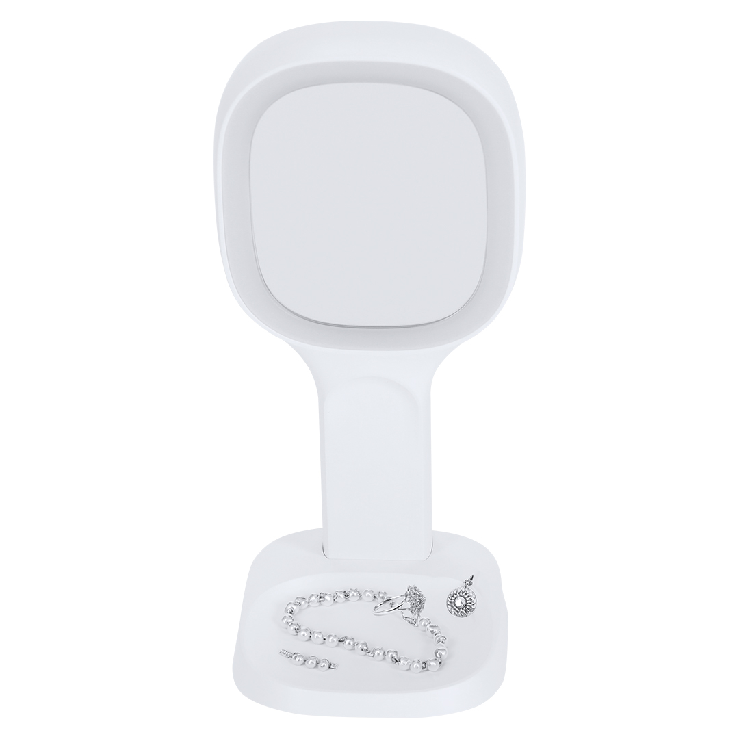 Espejo multifunción extraíble con versátiles funciones:- Espejo de aumento 1x por una cara y 5x por la otra.- Cargador inalámbrico de 15W.- Soporte para smartphone, permitiendo el uso del dispositivo mientras utilizas el espejo.- Luz con 3 intensidades: blanca, intermedia y cálida. Con 44 luces LEDs.- Compartimento para objetos pequeños.Fabricado conforme a los estándares RoHS y en cumplimiento con los siguientes requisitos de seguridad:Sistema de protección contra sobrecalentamiento. Producto de tipo espejo multifunción, pensado para acciones promocionales y uso diario. Este artículo está diseñado para campañas de marca, ferias y regalos corporativos. Destaca por su utilidad práctica y por su buena percepción como soporte publicitario. Permite personalización con logotipo o.