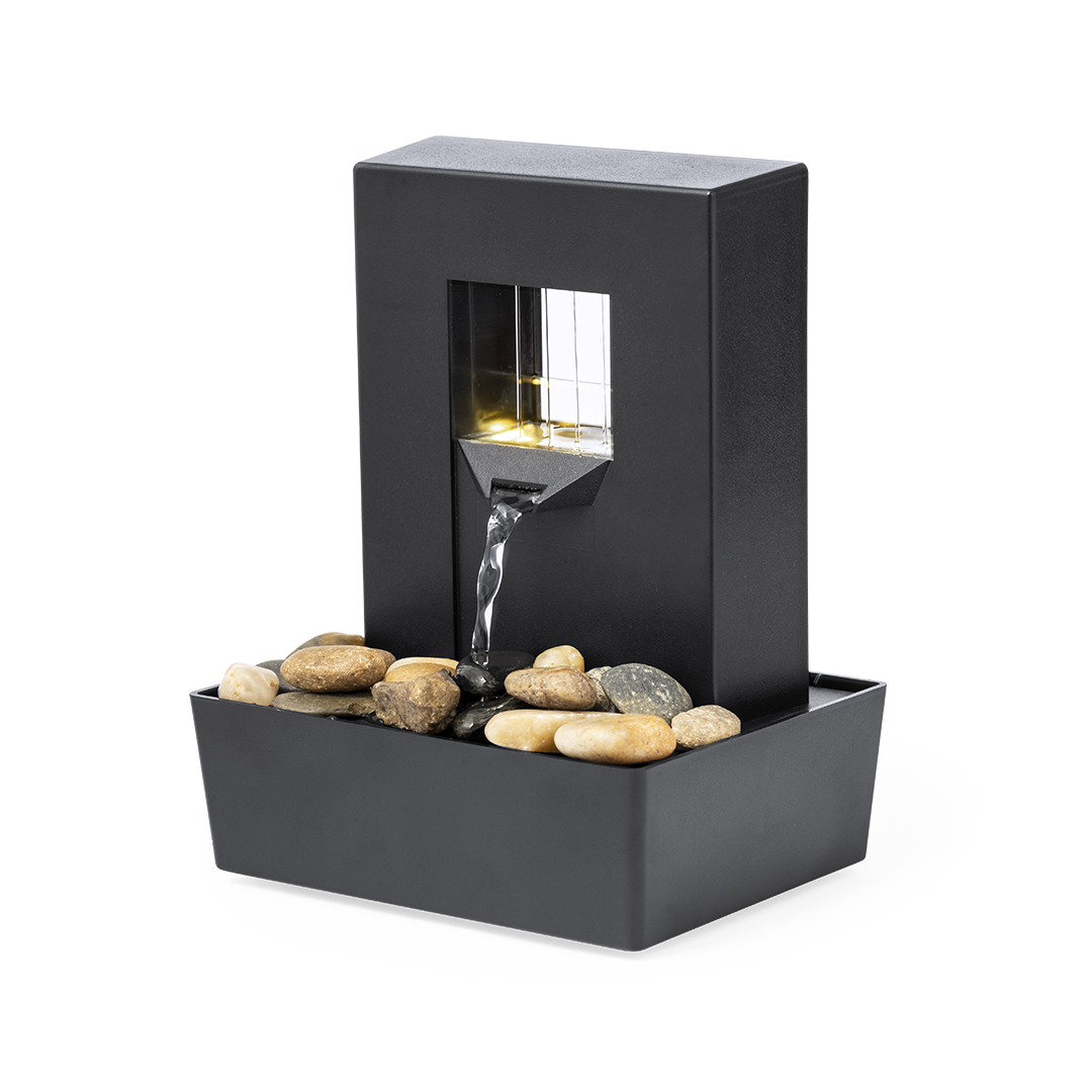 Fuente portátil de agua infinita con luces LED. Cascada de agua sobre piedras naturales, ideal para decoración o momentos de relajación. Producto de tipo fuente de agua, pensado para acciones promocionales y uso diario. Este artículo está diseñado para campañas de marca, ferias y regalos corporativos. Destaca por su utilidad práctica y por su buena percepción como soporte publicitario. Permite personalización con logotipo o mensaje, reforzando la visibilidad de la marca. Es una solución versátil que se adapta a diferentes públicos y contextos. Relacionado con los términos: Fuente de Agua, Hogar y Decoración, Regalos y Premiums.