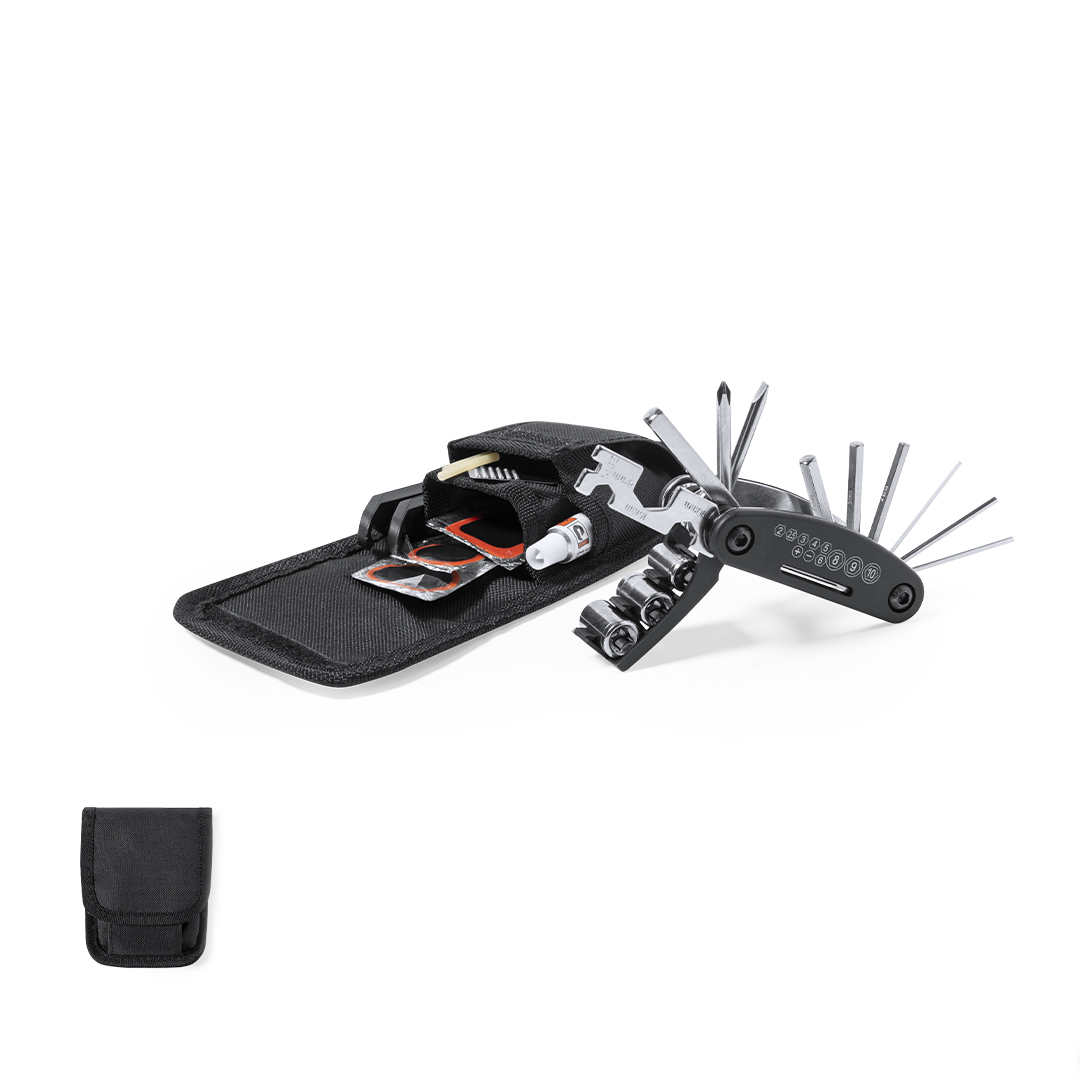 Completo kit de reparación para bici de 14 accesorios. Presentado en resistente estuche de poliéster 600D, con cierre de velcro. Producto de tipo kit reparación bici, pensado para acciones promocionales y uso diario. Este artículo está diseñado para campañas de marca, ferias y regalos corporativos. Destaca por su utilidad práctica y por su buena percepción como soporte publicitario. Permite personalización con logotipo o mensaje, reforzando la visibilidad de la marca. Es una solución versátil que se adapta a diferentes públicos y contextos. Relacionado con los términos: Kit Reparación Bici, Deporte y Aventura, Herramientas, Brico y Automóvil.