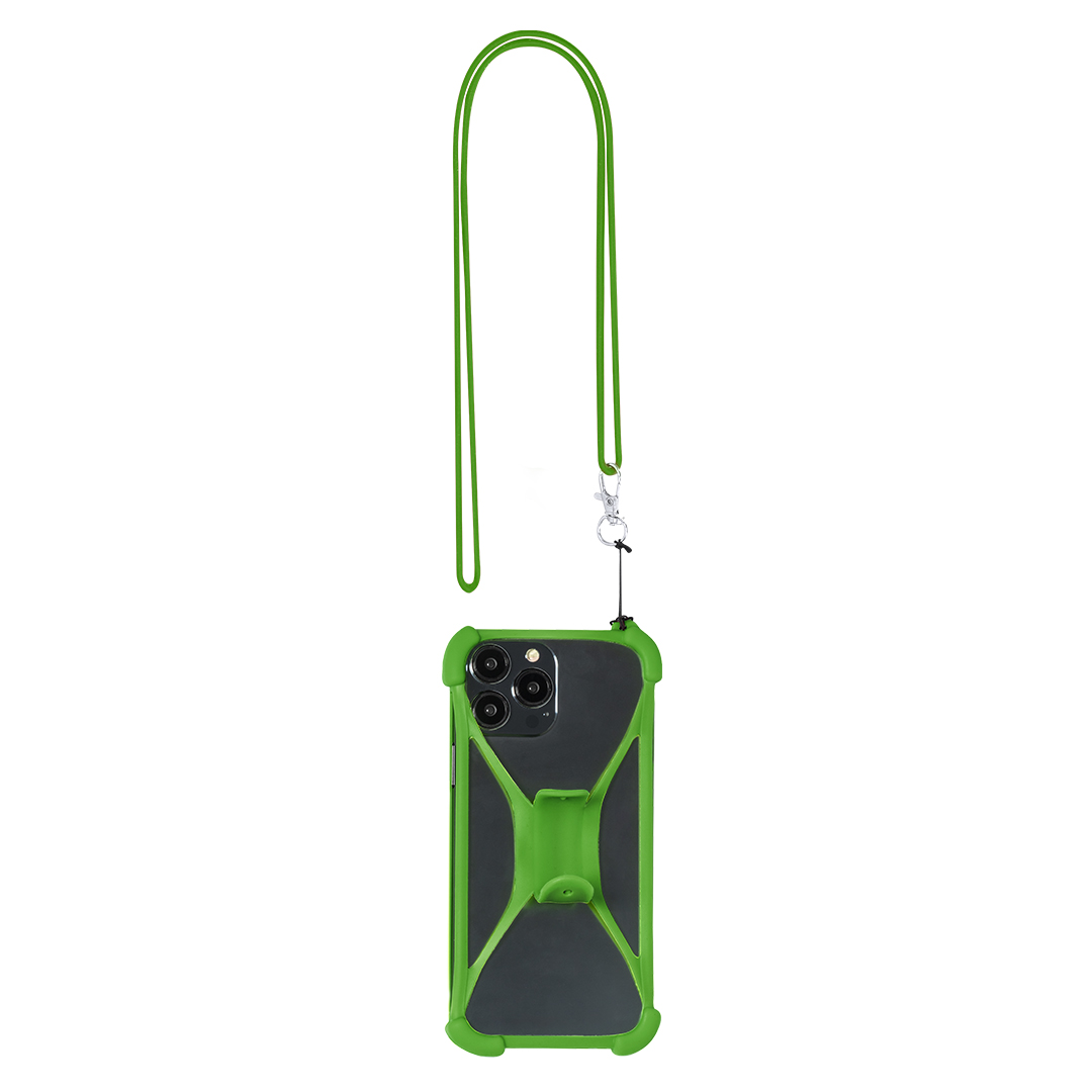 Práctico lanyard fabricado en resistente silicona. Incluye un accesorio para el móvil a juego, reforzado en las esquinas y con un soporte desplegable en la parte posterior. Producto de tipo lanyard soporte, pensado para acciones promocionales y uso diario. Este artículo está diseñado para campañas de marca, ferias y regalos corporativos.