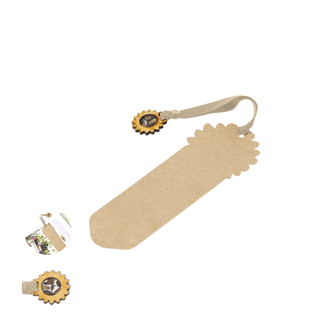 Práctico marcapáginas elaborado en cartón reciclado, con un diseño en forma de flecha y un cordón negro que facilita la búsqueda. En el extremo del cordón, incorpora una original cápsula con semillas de girasol.El cartón reciclado proviene del reaprovechamiento de excedente de fabricaciones y reciclaje de papel en el final de su vida útil, convirtiéndose en un lienzo ecológico y sostenible. Producto de tipo marcapáginas semillas, pensado para acciones promocionales y uso diario. Este artículo está diseñado para campañas de marca, ferias y regalos corporativos. Destaca por su utilidad práctica y por su buena percepción como soporte publicitario. Permite personalización con logotipo o mensaje, reforzando la visibilidad de la marca.