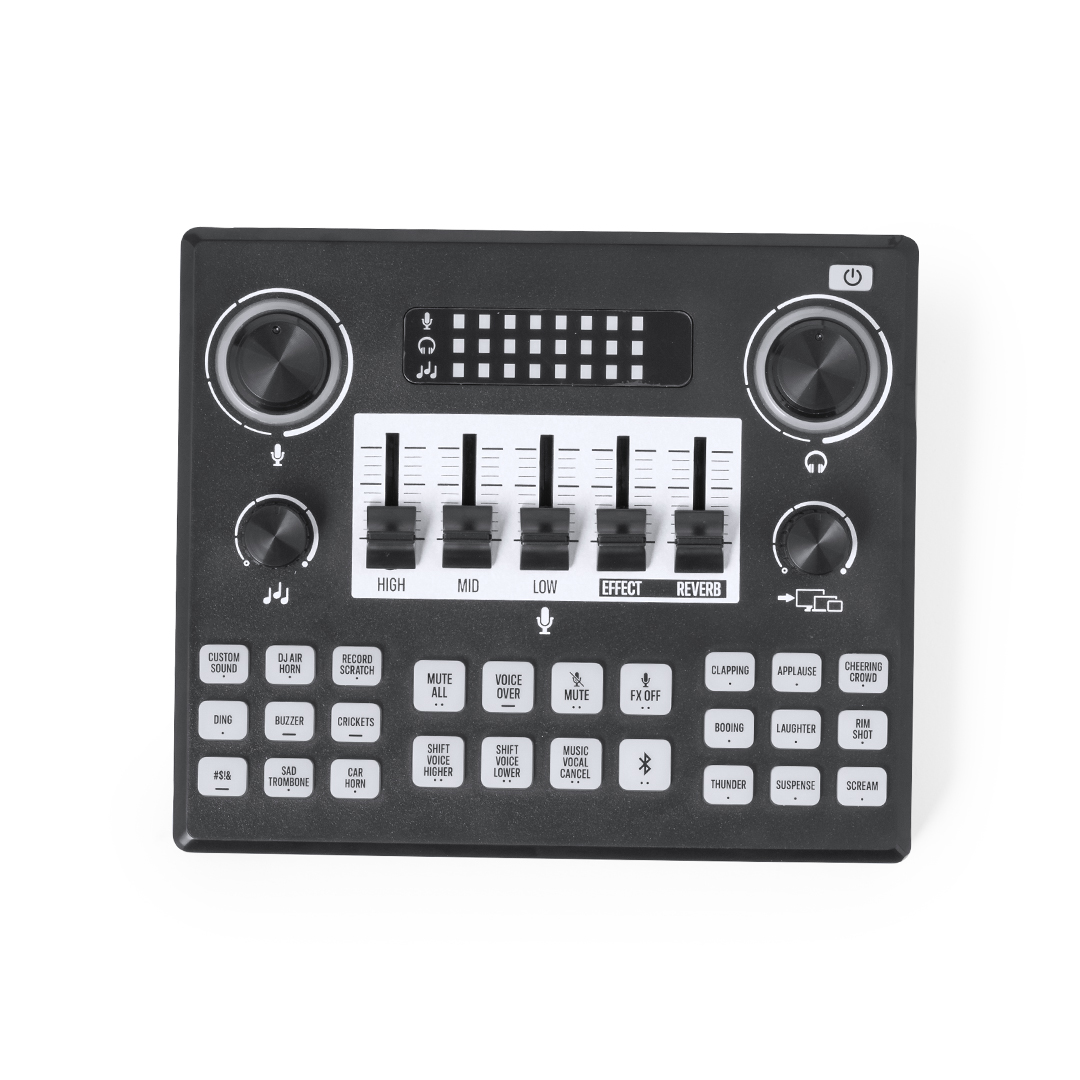 Fantástica mesa de mezclas, fusión de estilo y funcionalidad, que eleva cada sesión al siguiente nivel. Ofrece un control total, con multitud de deslizadores y potenciómetros retroiluminados que, combinados con una interfaz de usuario intuitiva, posibilitan la creación de mezclas impresionantes. Producto de tipo mesa de mezclas, pensado para acciones promocionales y uso diario. Este artículo está diseñado para campañas de marca, ferias y regalos corporativos. Destaca por su utilidad práctica y por su buena percepción como soporte publicitario. Permite personalización con logotipo o mensaje, reforzando la visibilidad de la marca. Es una solución versátil que se adapta a diferentes públicos y contextos. Relacionado con los términos: Mesa de Mezclas,.
