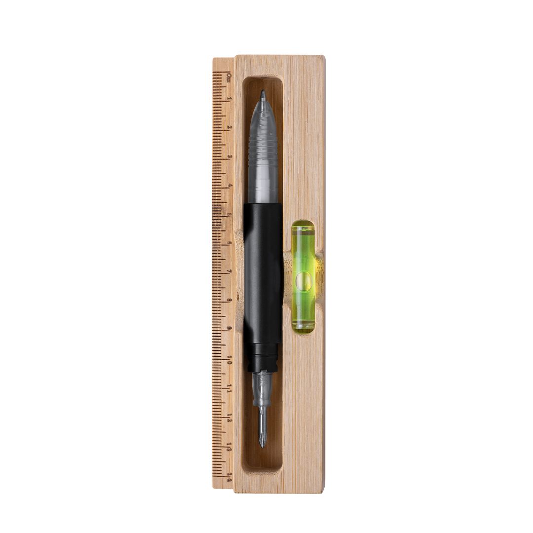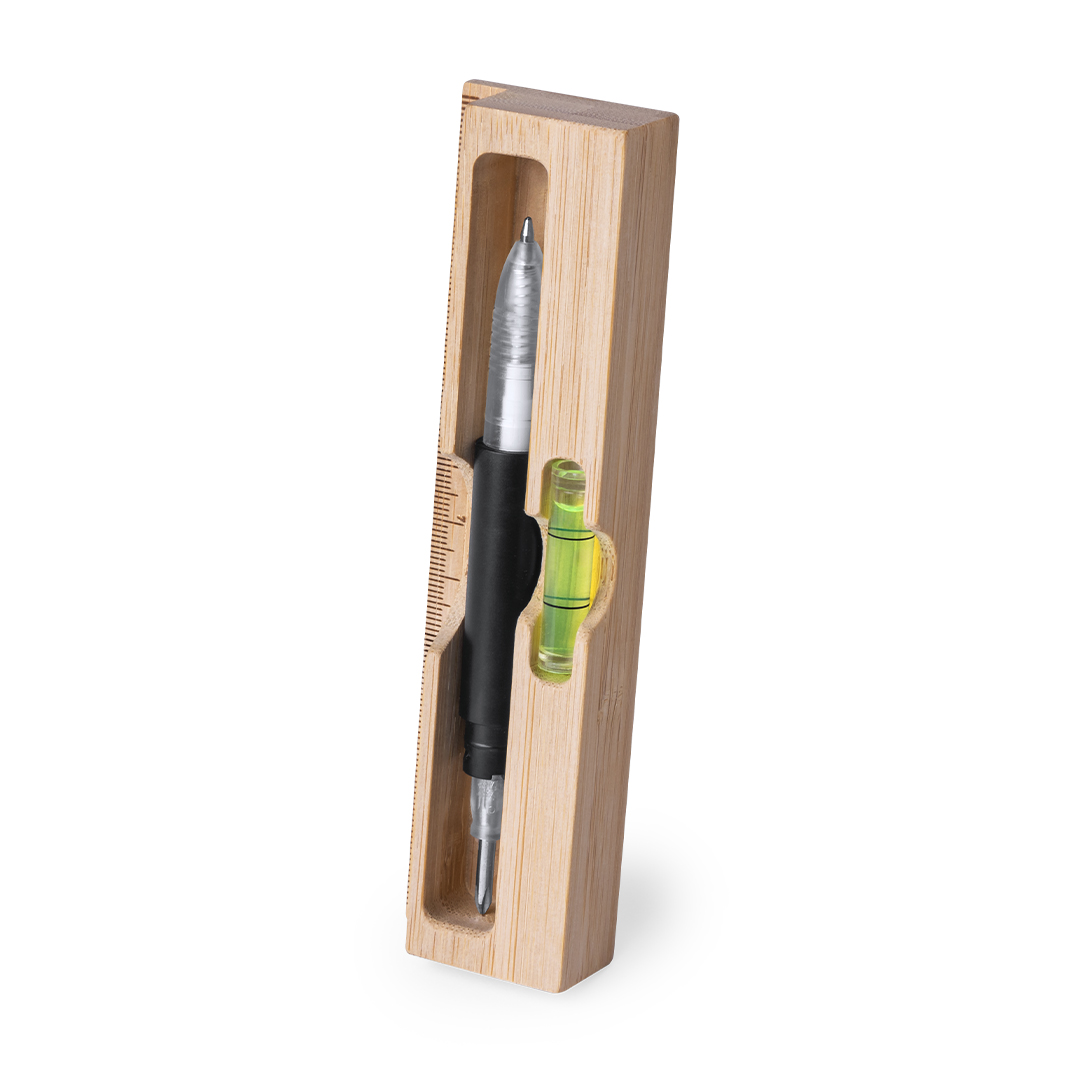 Práctica multiherramienta de 5 funciones, fabricada en resistente acero al carbono y acabado en color negro. Con funciones destornillador (punta plana y philips) y bolígrafo con tinta azul (cartucho jumbo). Producto de tipo multiherramienta, pensado para acciones promocionales y uso diario. Este artículo está diseñado para campañas de marca, ferias y regalos corporativos. Destaca por su utilidad práctica y por su buena percepción como soporte publicitario. Permite personalización con logotipo o mensaje, reforzando la visibilidad de la marca. Es una solución versátil que se adapta a diferentes públicos y contextos. Relacionado con los términos: Multiherramienta, Herramientas, Brico y Automóvil, Artículos Sostenibles.