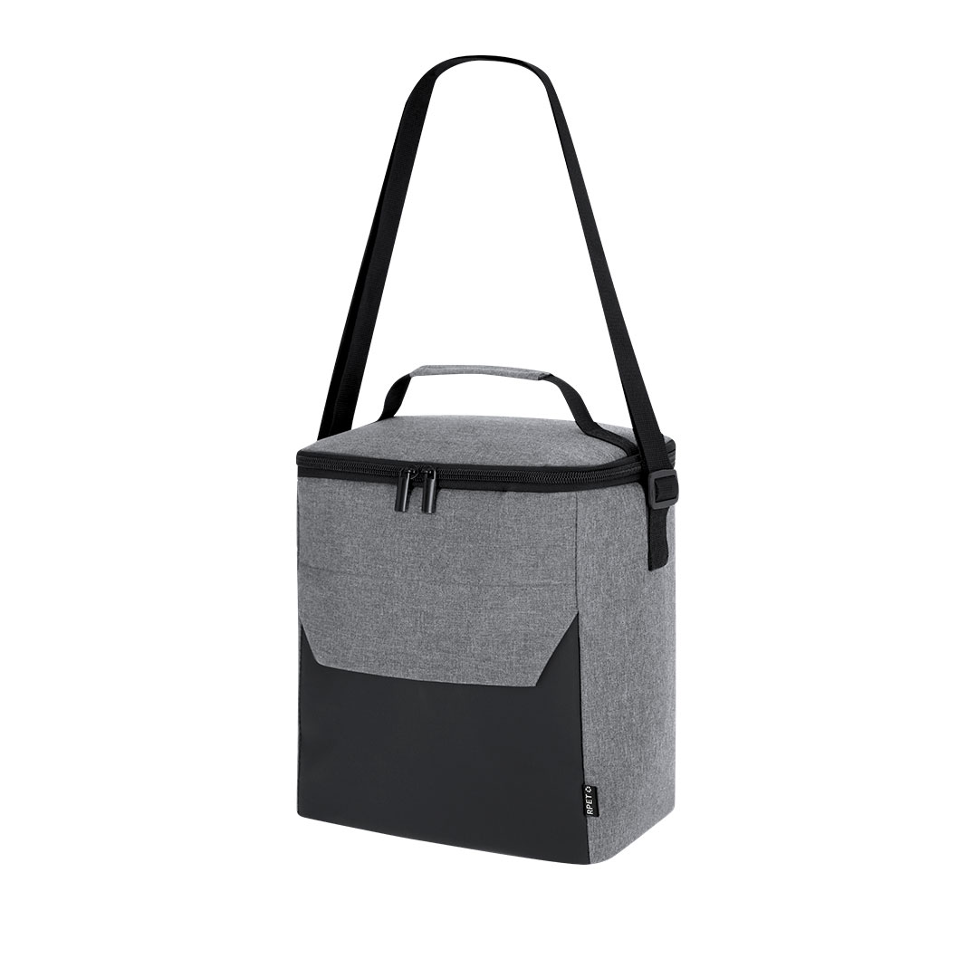 Nevera fabricada en resistente RPET 600D en combinación con PU. Incluye compartimento principal, con cierre de cremallera y doble tirador metálico, con interior isotermo en PEVA. Producto de tipo nevera, pensado para acciones promocionales y uso diario. Este artículo está diseñado para campañas de marca, ferias y regalos corporativos.
