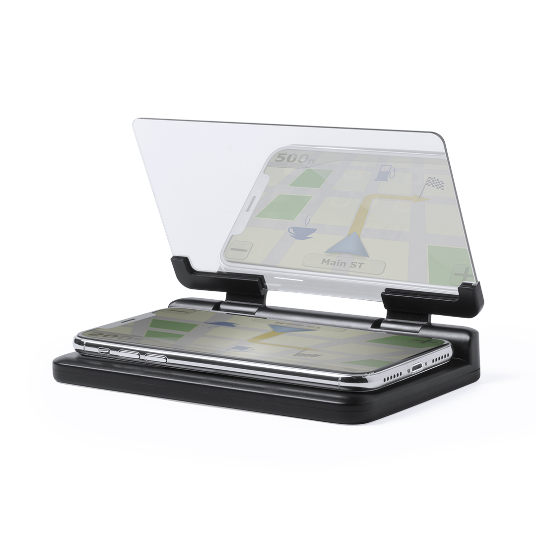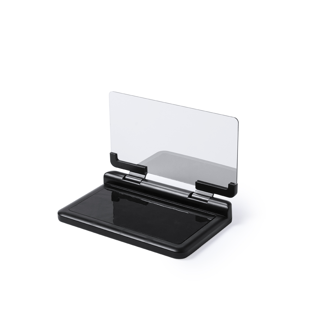 Pantalla soporte para automóvil. Con espejo duplicador de imagen ajustable y superficie anti deslizante ultra adherente para salpicadero y smartphone. Producto de tipo pantalla soporte, pensado para acciones promocionales y uso diario. Este artículo está diseñado para campañas de marca, ferias y regalos corporativos.