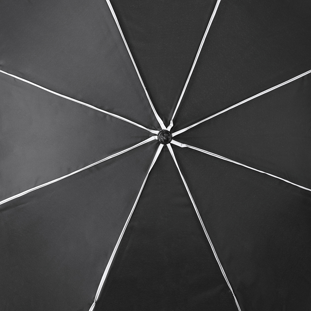 Paraguas antiviento fabricado en RPET 190T de 8 paneles, con elegante diseño en color negro con ribetes reflectantes. De 120cm de diámetro, con apertura automática y en resistente material pongee. Producto de tipo paraguas, pensado para acciones promocionales y uso diario. Este artículo está diseñado para campañas de marca, ferias y regalos corporativos. Destaca por su utilidad práctica y por su buena percepción como soporte publicitario. Permite personalización con logotipo o mensaje, reforzando la visibilidad de la marca. Es una solución versátil que se adapta a diferentes públicos y contextos. Relacionado con los términos: Paraguas, Novedades, Lluvia y Frio.