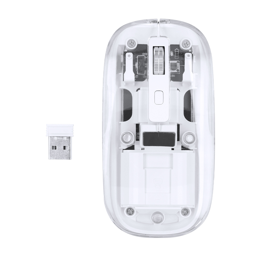 Ratón óptico inalámbrico de original diseño, con cuerpo transparente que permite ver los componentes internos del dispositivo. Con batería integrada de 300 mAh y con puerto de carga Tipo C (cable incluido). Producto de tipo ratón, pensado para acciones promocionales y uso diario. Este artículo está diseñado para campañas de marca, ferias y regalos corporativos. Destaca por su utilidad práctica y por su buena percepción como soporte publicitario. Permite personalización con logotipo o mensaje, reforzando la visibilidad de la marca. Es una solución versátil que se adapta a diferentes públicos y contextos. Relacionado con los términos: Ratón, Tecnología y Accesorios.
