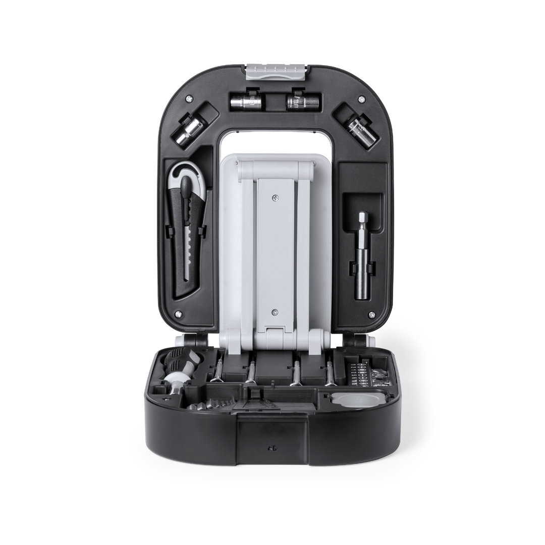 Original set de herramientas con luz y 30 accesorios. Presentado en resistente caja de ABS negra con cierre. Producto de tipo set herramientas, pensado para acciones promocionales y uso diario. Este artículo está diseñado para campañas de marca, ferias y regalos corporativos. Destaca por su utilidad práctica y por su buena percepción como soporte publicitario. Permite personalización con logotipo o mensaje, reforzando la visibilidad de la marca. Es una solución versátil que se adapta a diferentes públicos y contextos. Relacionado con los términos: Set Herramientas, Herramientas, Brico y Automóvil. Es una opción equilibrada para merchandising funcional y efectivo.
