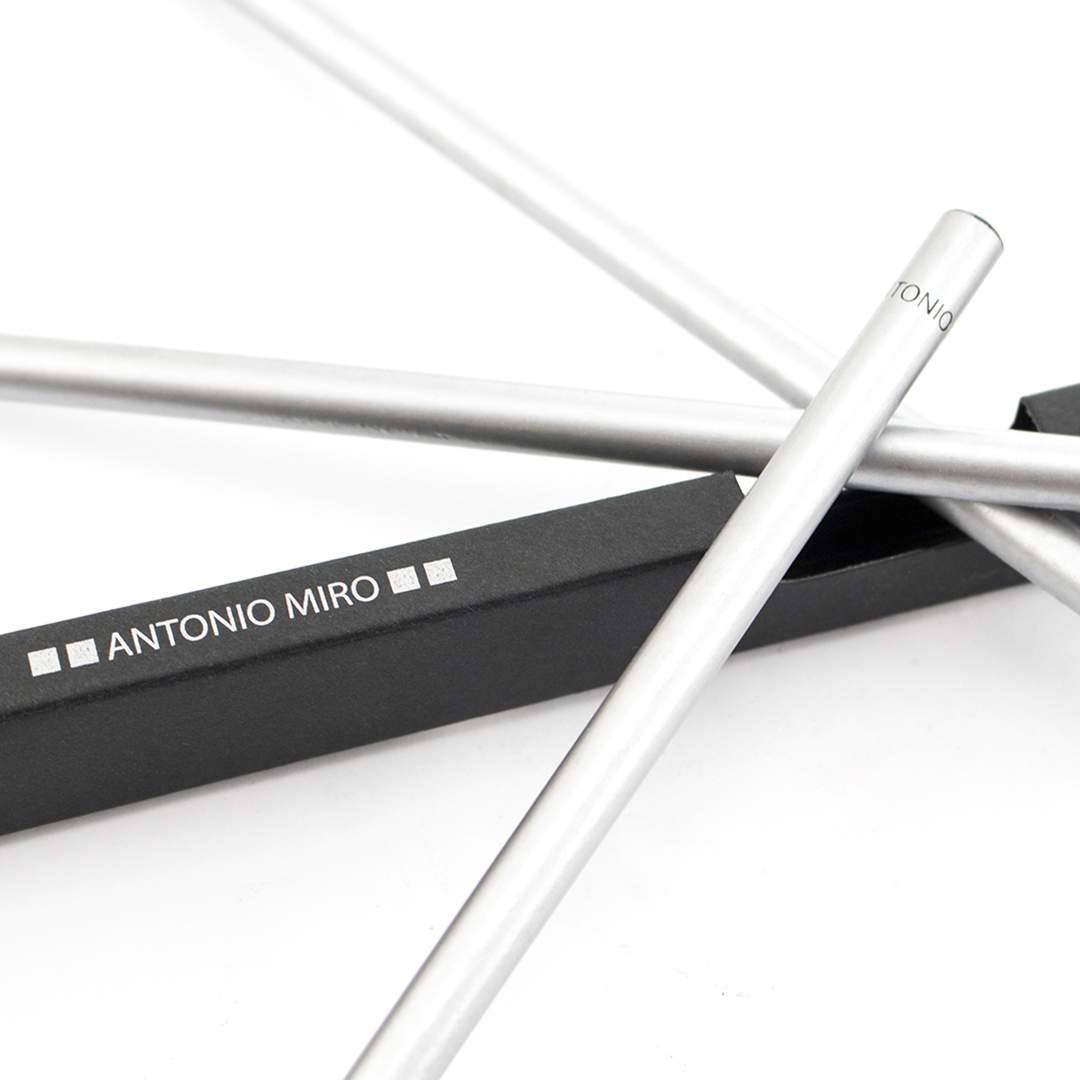 Set de 3 lápices de madera de Antonio Miró en elegante acabado plateado, con logotipo de la marca en parte superior. Presentados en elegante estuche de cartón negro con ventana y logotipo de la marca. Producto de tipo set lápices, pensado para acciones promocionales y uso diario. Este artículo está diseñado para campañas de marca, ferias y regalos corporativos. Destaca por su utilidad práctica y por su buena percepción como soporte publicitario. Permite personalización con logotipo o mensaje, reforzando la visibilidad de la marca. Es una solución versátil que se adapta a diferentes públicos y contextos. Relacionado con los términos: Set Lápices, Antonio Miro, Escritura, Marcas, Outlet.
