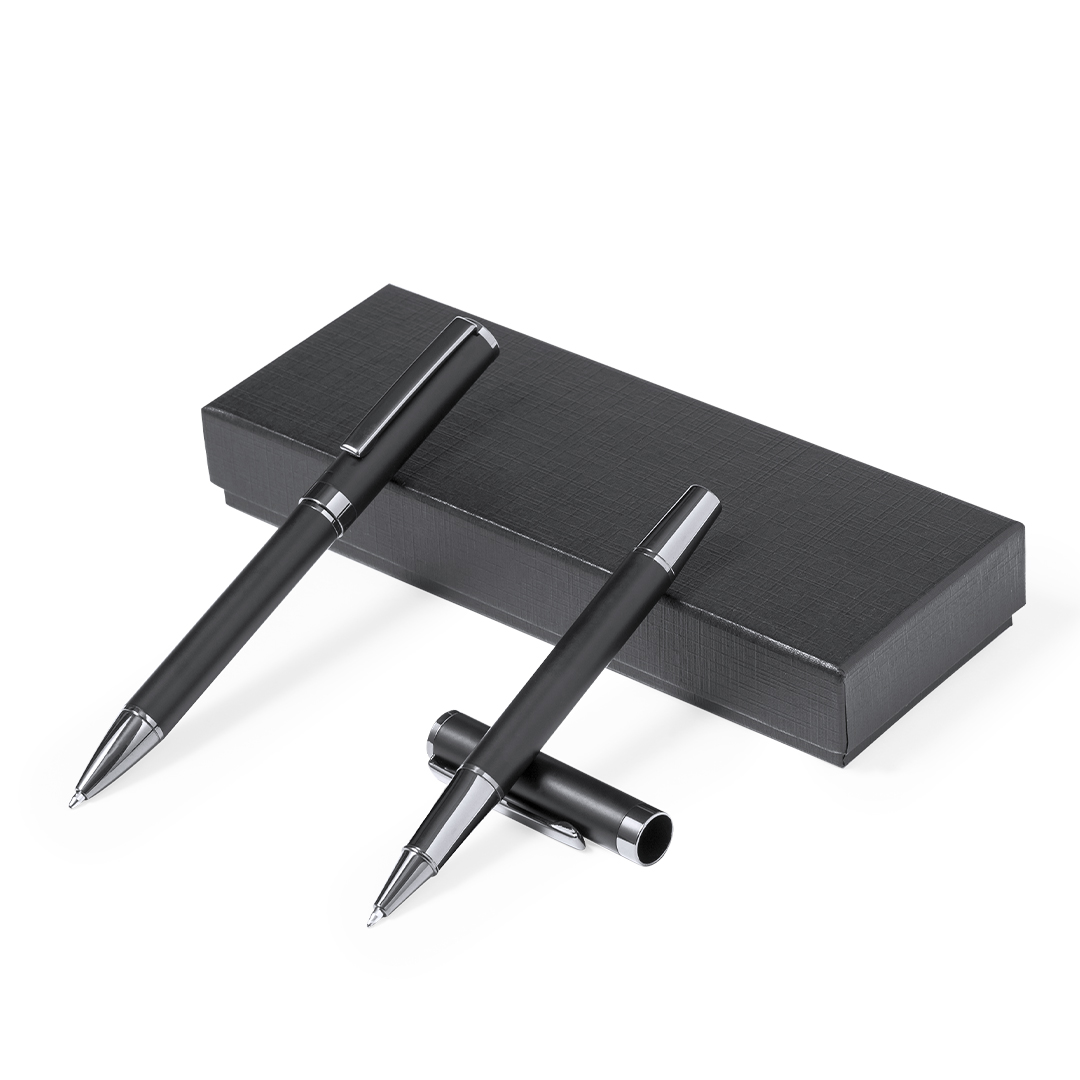 Elegante set de bolígrafo y roller. Bolígrafo de mecanismo giratorio y roller con capucha, ambos provistos de un clip metálico. Producto de tipo set, pensado para acciones promocionales y uso diario. Este artículo está diseñado para campañas de marca, ferias y regalos corporativos. Destaca por su utilidad práctica y por su buena percepción como soporte publicitario. Permite personalización con logotipo o mensaje, reforzando la visibilidad de la marca. Es una solución versátil que se adapta a diferentes públicos y contextos. Relacionado con los términos: Set, Escritura. Es una opción equilibrada para merchandising funcional y efectivo.