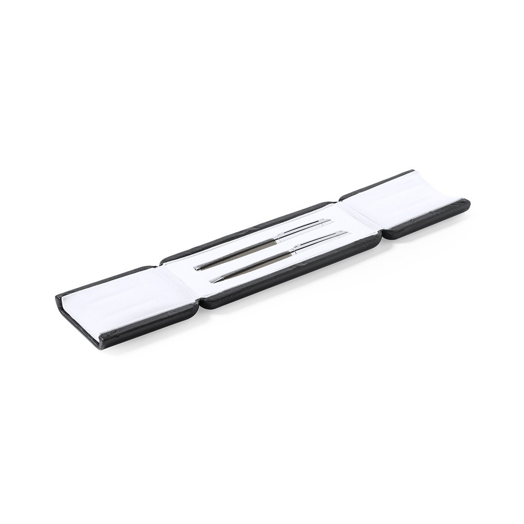 Set premium de bolígrafo y roller. Fabricado en elegante combinación de metal en tonos negros y cromados. Producto de tipo set, pensado para acciones promocionales y uso diario. Este artículo está diseñado para campañas de marca, ferias y regalos corporativos. Destaca por su utilidad práctica y por su buena percepción como soporte publicitario. Permite personalización con logotipo o mensaje, reforzando la visibilidad de la marca. Es una solución versátil que se adapta a diferentes públicos y contextos. Relacionado con los términos: Set, Escritura. Es una opción equilibrada para merchandising funcional y efectivo.