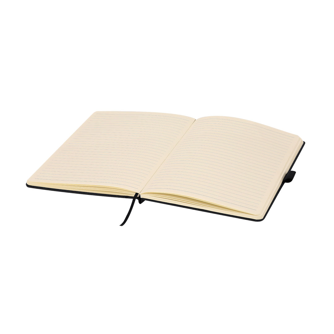 Elegante set premium que incluye:Bloc de notas en RPET en elegante color negro. Incluye cierre elástico, bolsillo frontal y marcapáginas de tela. Producto de tipo set, pensado para acciones promocionales y uso diario. Este artículo está diseñado para campañas de marca, ferias y regalos corporativos.