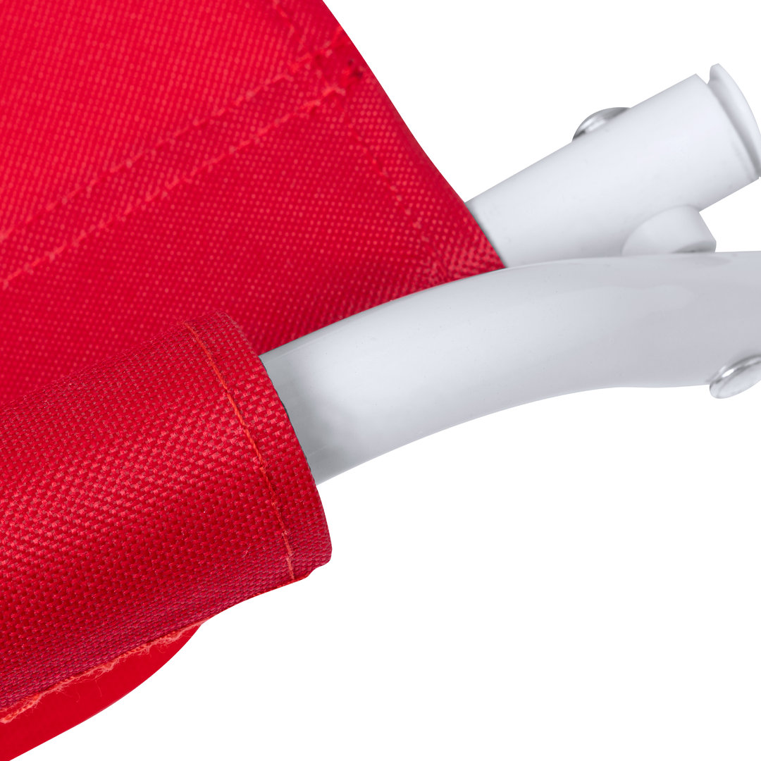 Silla plegable ligera y resistente, con estructura metálica lacada en color blanco. Respaldo y asiento en poliéster 600D, con acolchado en espuma a juego en reposabrazos y reposacabezas. Producto de tipo silla, pensado para acciones promocionales y uso diario. Este artículo está diseñado para campañas de marca, ferias y regalos corporativos.