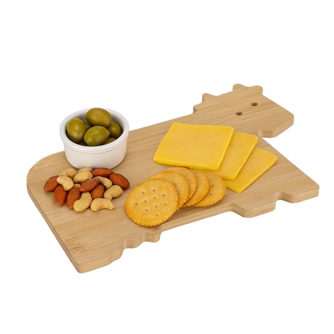 Tabla de cocina con original diseño en forma de vaca, fabricada en suave bambú, muy fácil de limpiar y guardar. Producto de tipo tabla, pensado para acciones promocionales y uso diario. Este artículo está diseñado para campañas de marca, ferias y regalos corporativos.