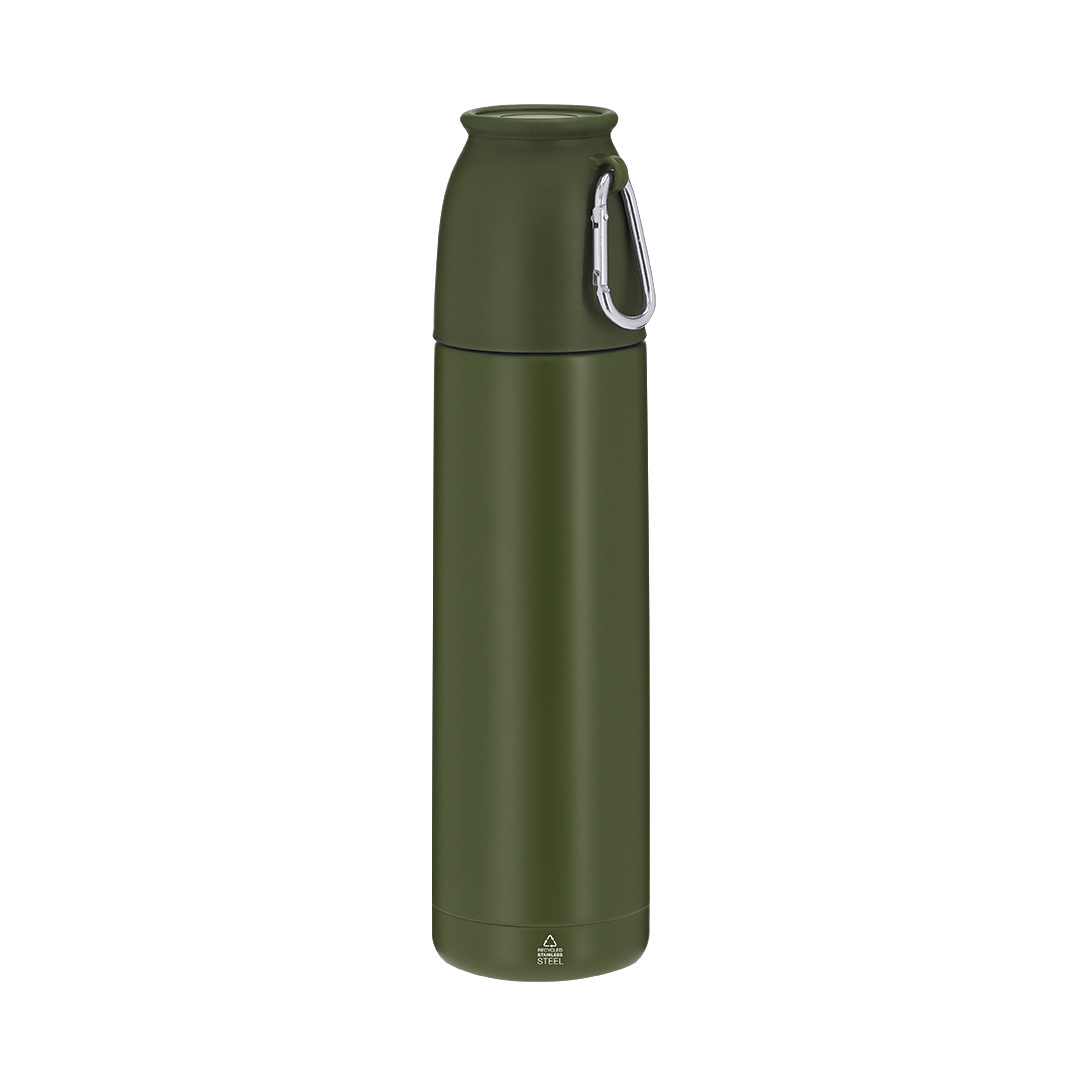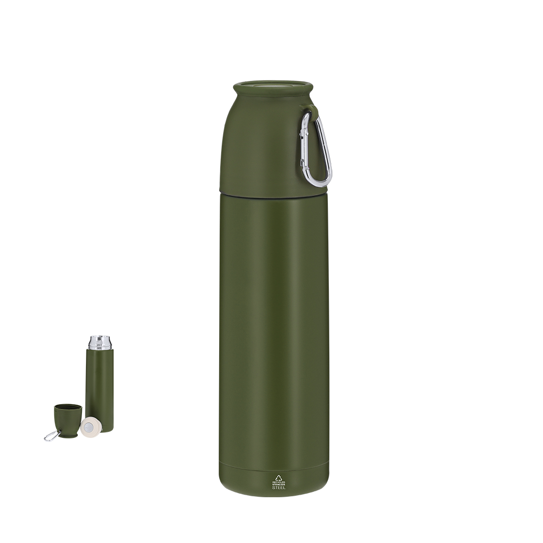 Set de termo con taza fabricado en Acero Inox Reciclado. Termo de 500 ml de capacidad y de doble pared, que garantiza una mejor y más duradera conservación de la temperatura, con dosificador de seguridad. Producto de tipo termo, pensado para acciones promocionales y uso diario. Este artículo está diseñado para campañas de marca, ferias y regalos corporativos. Destaca por su utilidad práctica y por su buena percepción como soporte publicitario. Permite personalización con logotipo o mensaje, reforzando la visibilidad de la marca. Es una solución versátil que se adapta a diferentes públicos y contextos. Relacionado con los términos: Termo, Tazas, Jarras y Termos.
