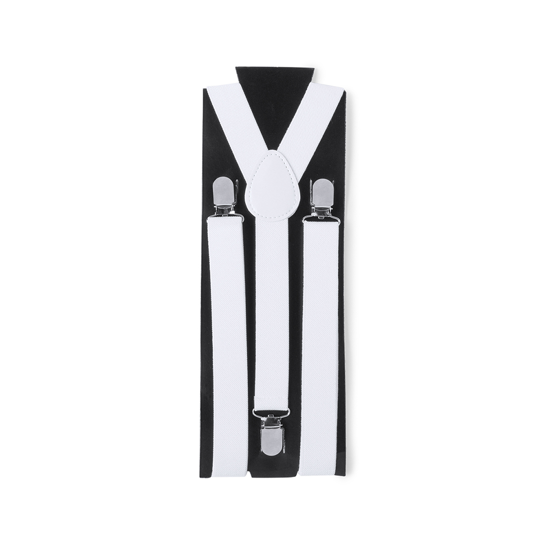 Tirántes elásticos de poliéster en sobrios colores con accesorios metálicos. Con refuerzo de polipiel en espalda a juego y presentados en original cartulina individual de color negro. Producto de tipo tirantes, pensado para acciones promocionales y uso diario. Este artículo está diseñado para campañas de marca, ferias y regalos corporativos. Destaca por su utilidad práctica y por su buena percepción como soporte publicitario. Permite personalización con logotipo o mensaje, reforzando la visibilidad de la marca. Es una solución versátil que se adapta a diferentes públicos y contextos. Relacionado con los términos: Tirantes, Regalos y Premiums, Outlet.